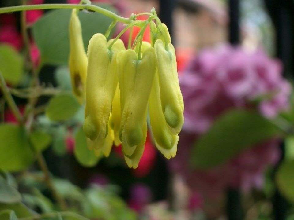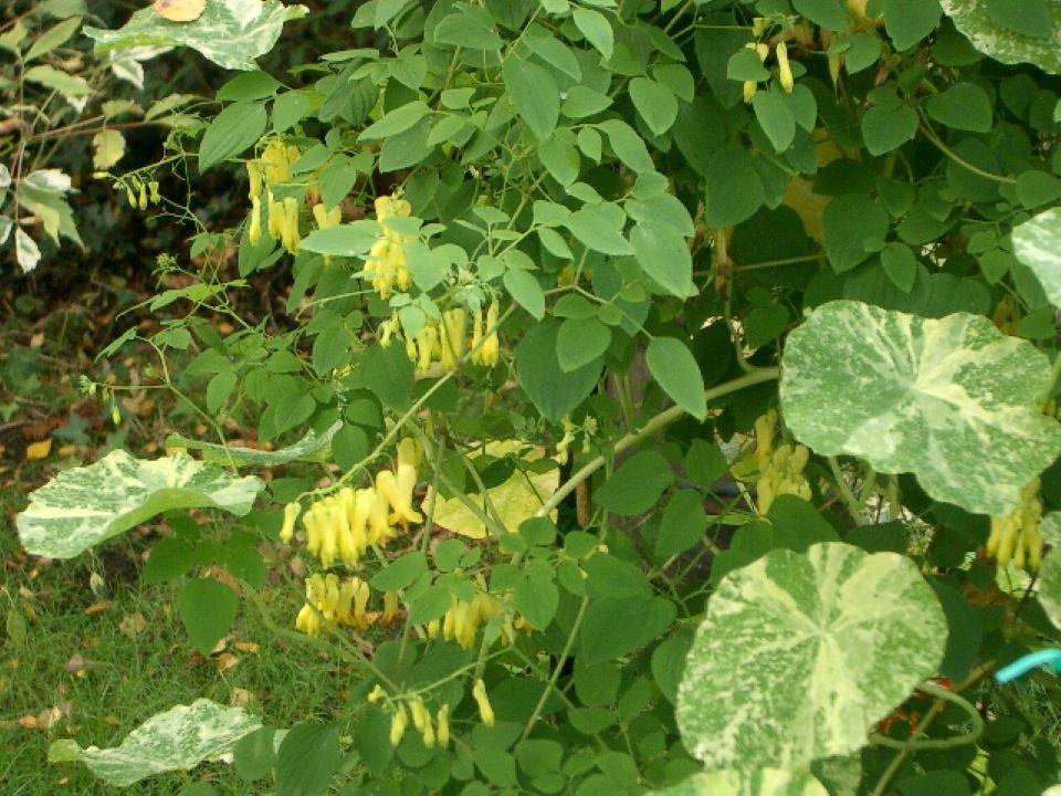 Discentra spectabilis or Bleeding Heart has been dealt with in an earlier chapter but here is a climber which I was fortunate enough to obtain seed of. The genus Discentra has now been turned upside down, sorry revised, so Discentra scandens is now Dactylicapnos scandens and our old familiar bleeding heart is Lamprocapnos spectabilis, when will it end! D.scandens by the way, is not frost hardy.