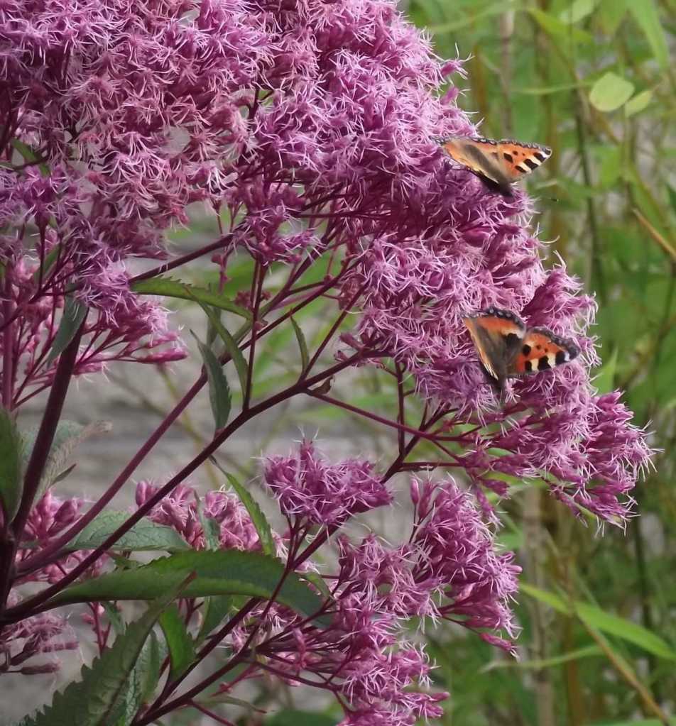 I’ve been missing for a few weeks as, to be frank, I had very little to show without constant repetition. The main show now is the Eutrochium maculatum Atropurpureum Group which, despite my earlier fears, when there were hardly any butterflies to be seen, has done its job. This year the buddleias were covered in Peacock Butterflies and then there was a gap even though Joe Pye was in flower. Now there are plenty of mainly Red Admirals to be seen, when the sun comes out. I am assuming it is to do with the hot dry summer, but I have not seen so many different species of bees as I have this year either. Another new visitor attracted to an old honeysuckle is the Hummingbird Hawk Moth. It is easy to spot as it jinks about, but much harder to photograph!