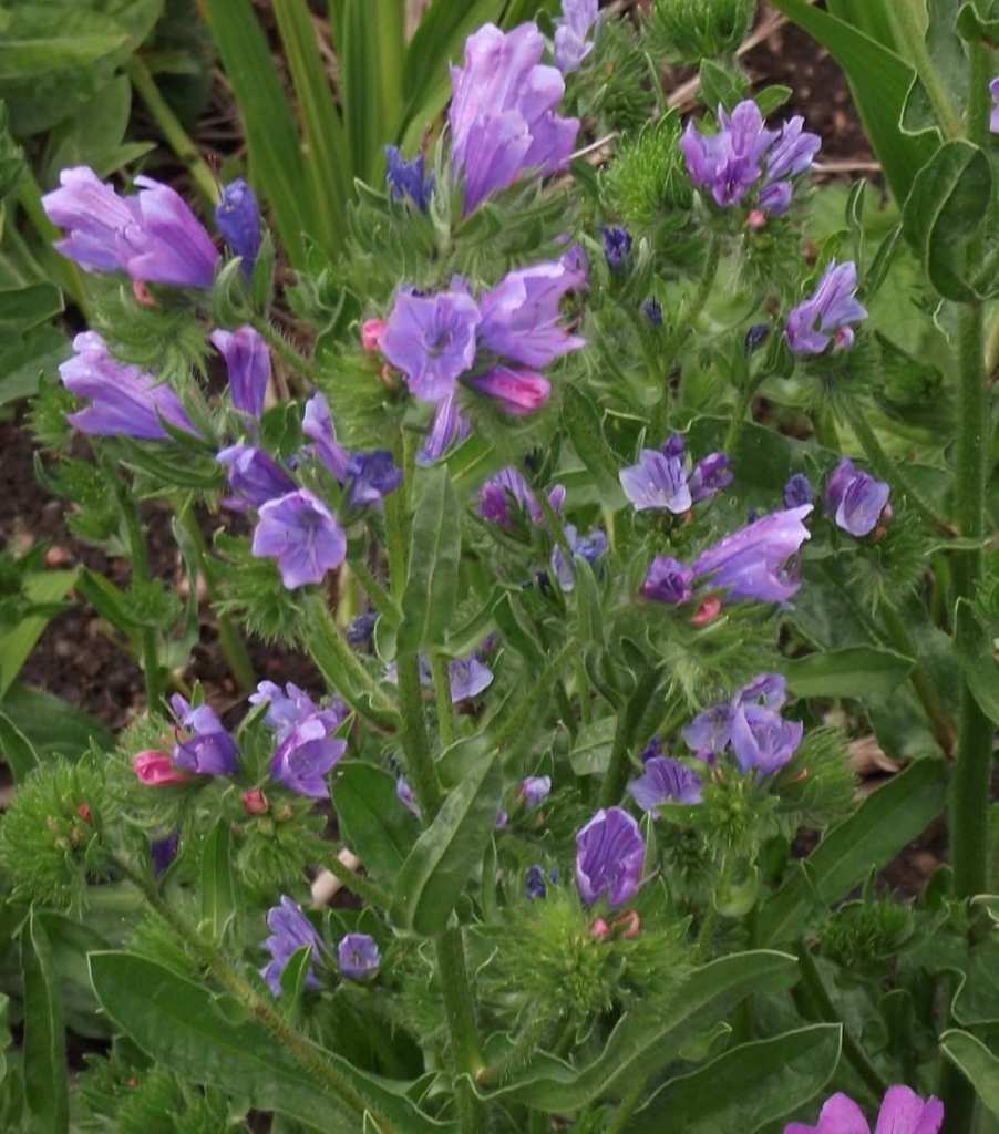 The common viper’s bugloss (Echium vulgare) is a native flower, which I first saw in a garden when I was in my early teens. We had neighbours who had returned from India after serving in the British Raj, which we youngsters found fascinating. Charles was a keen amateur astronomer and my father and I spent a few nights with him gazing at the stars. His wife Effie (Euphemia) was a very keen gardener and an archetypical, indomitable Victorian lady who did much to encourage me in the ways of gardening. One of her favourites was viper’s bugloss, which I have grown in her memory ever since. Echium plantagineum, the purple viper’s bugloss, actually comes from warmer climes, but it is flowering from a February cold sowing.