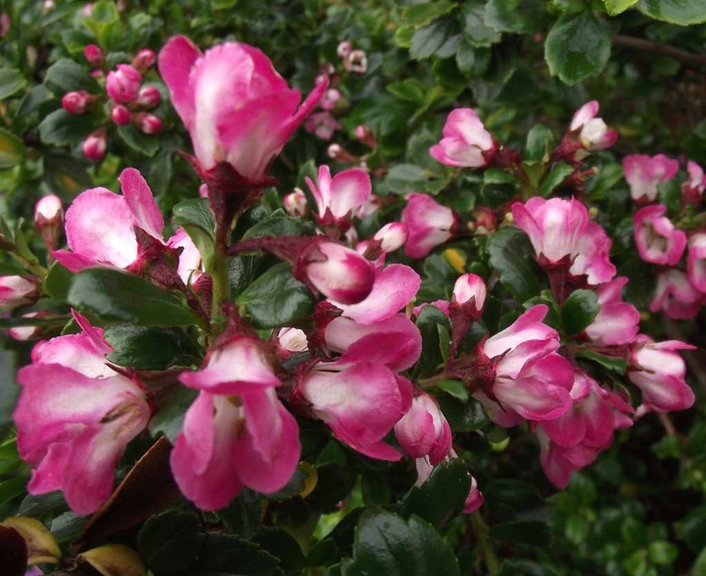 Although escallonias don’t seem to be as popular as they used to be, this one is so aptly named. The dark green, evergreen foliage makes an excellent foil for those plants in front of it.